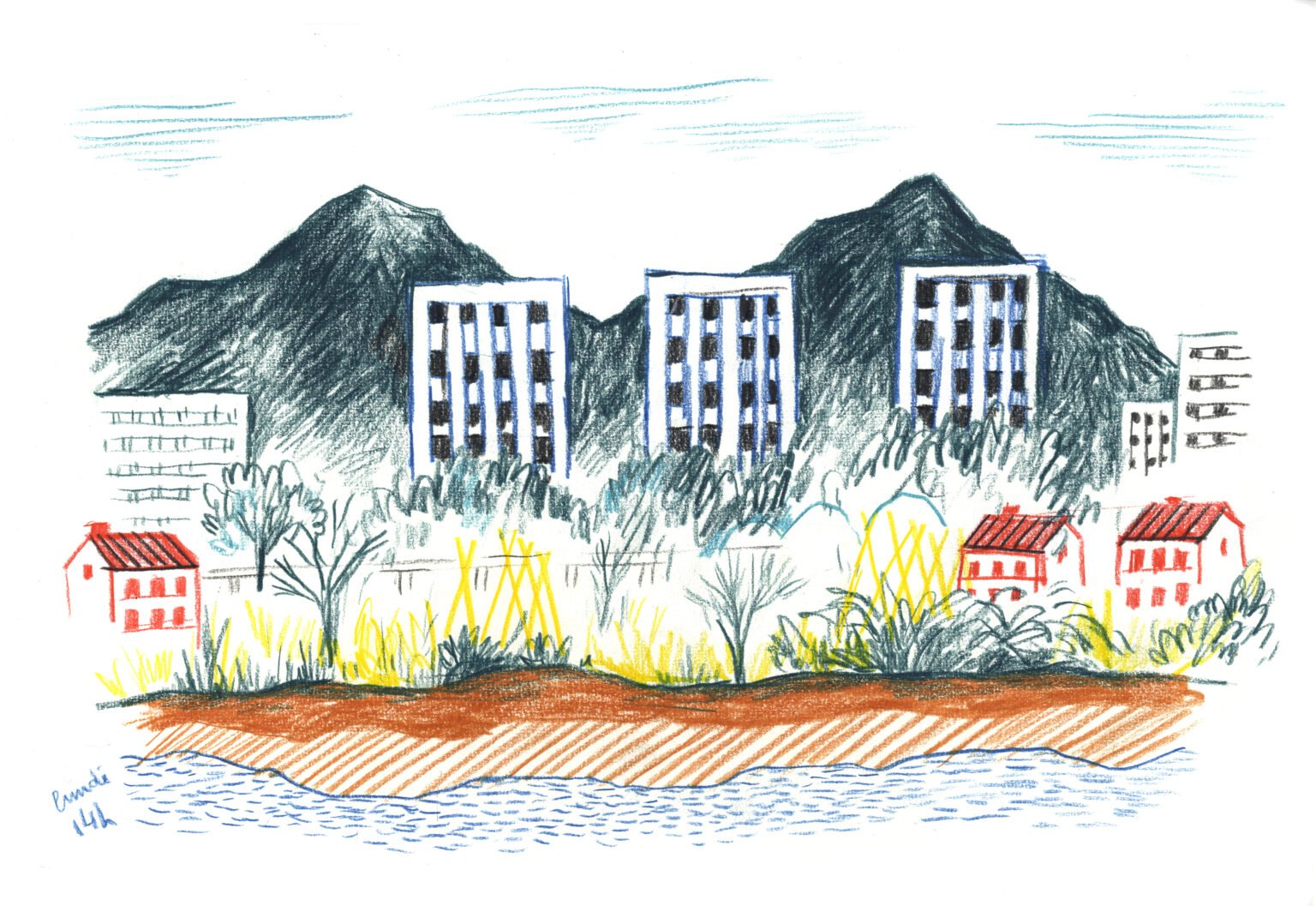Premièrement, il s’agit de contester la densification comme étant une des notions efficaces, voire ultimes – pour aller jusqu’au manifeste écomoderniste, avec la ville ultraconcentrée et ultratechnologique qui laisse place à la campagne autour. Il y a un niveau à partir duquel la densité devient contre-productive, car trop de matériaux et d’énergie incorporés, trop de distance à parcourir. On a l’impression d’être des métropolitains ultra efficaces, consommant peu de mètres carrés, se déplaçant à pied, en tramway ou en bus, mais en réalité, on clique sur Internet, et à l’extérieur de la ville se sont installés des data centers et des zones logistiques de vente privée qui consomment du sol sans même qu’on s’en rende compte.